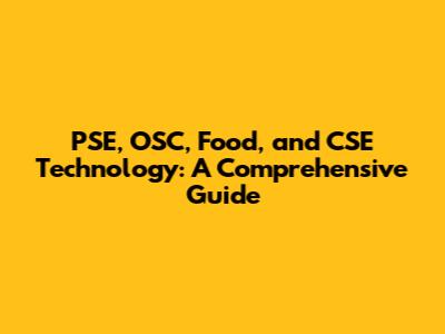 PSE, OSC, Food, And CSE Technology: A Comprehensive Guide