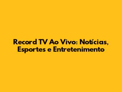 Record TV Ao Vivo: Notícias, Esportes E Entretenimento