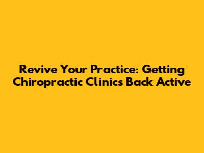 Revive Your Practice: Getting Chiropractic Clinics Back Active