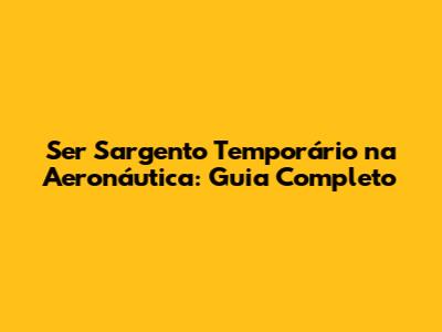 Ser Sargento Temporário Na Aeronáutica: Guia Completo
