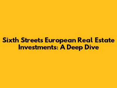Hey guys! Let's dive into something super interesting today: Sixth Street's real estate investments in Europe. This is a big deal in the finance world, and understanding it can give you some serious insights. We're going to break down what Sixth Street is, what they're doing in Europe, and why it matters. Trust me, it's more exciting than it sounds!