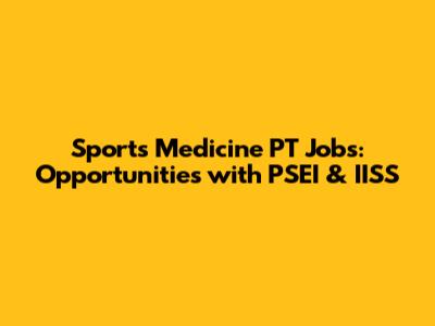 Sports Medicine PT Jobs: Opportunities With PSEI & IISS