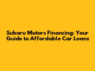 Subaru Motors Financing: Your Guide To Affordable Car Loans