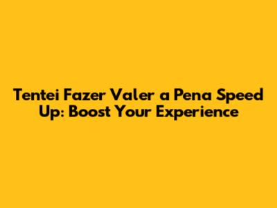 Tentei Fazer Valer A Pena Speed Up: Boost Your Experience