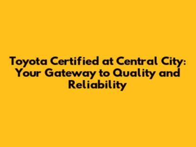 Hey guys! Are you on the hunt for a reliable and trustworthy vehicle in Central City? Look no further! A Toyota Certified vehicle might just be the perfect solution for you. Buying a car is a big decision, and navigating the used car market can sometimes feel like traversing a minefield. That's where the Toyota Certified program comes in, offering a fantastic way to get behind the wheel of a pre-owned Toyota with added peace of mind. In this article, we'll dive deep into everything you need to know about finding your dream Toyota Certified vehicle right here in Central City. We'll explore the benefits, the selection process, and why choosing a certified pre-owned Toyota from a reputable dealership in Central City is a smart move. So buckle up, and let's get started!