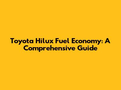 Toyota Hilux Fuel Economy: A Comprehensive Guide