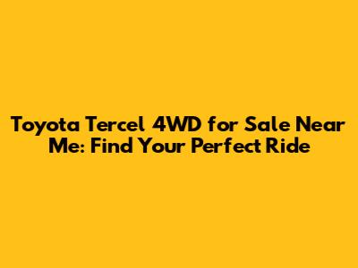 Toyota Tercel 4WD For Sale Near Me: Find Your Perfect Ride