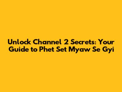 Unlock Channel 2 Secrets: Your Guide To Phet Set Myaw Se Gyi