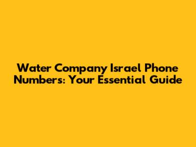 Water Company Israel Phone Numbers